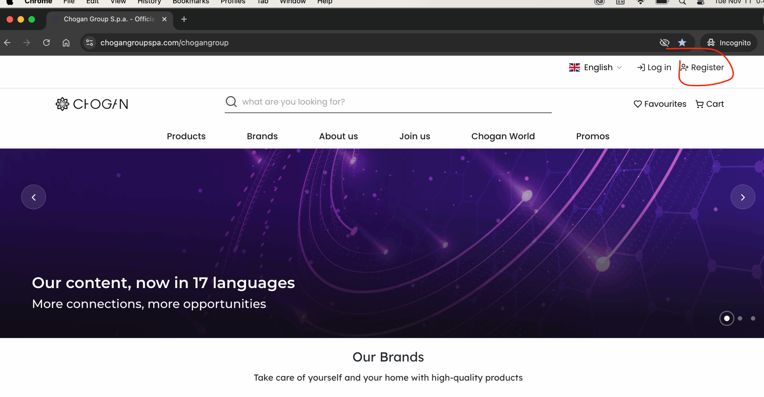 1.1. Öffnen Sie die Chogan-Website über diesen Link: https://www.chogangroupspa.com/chogangroup