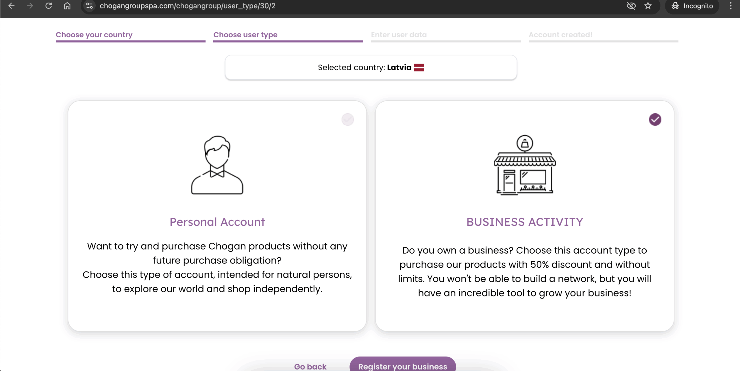 2.7. Pēc reģistrācijas paies aptuveni diena kamēr Chogan apstiprinās Tavus datus un pārabudīs vai atbilst VAT (PVN) numurs.