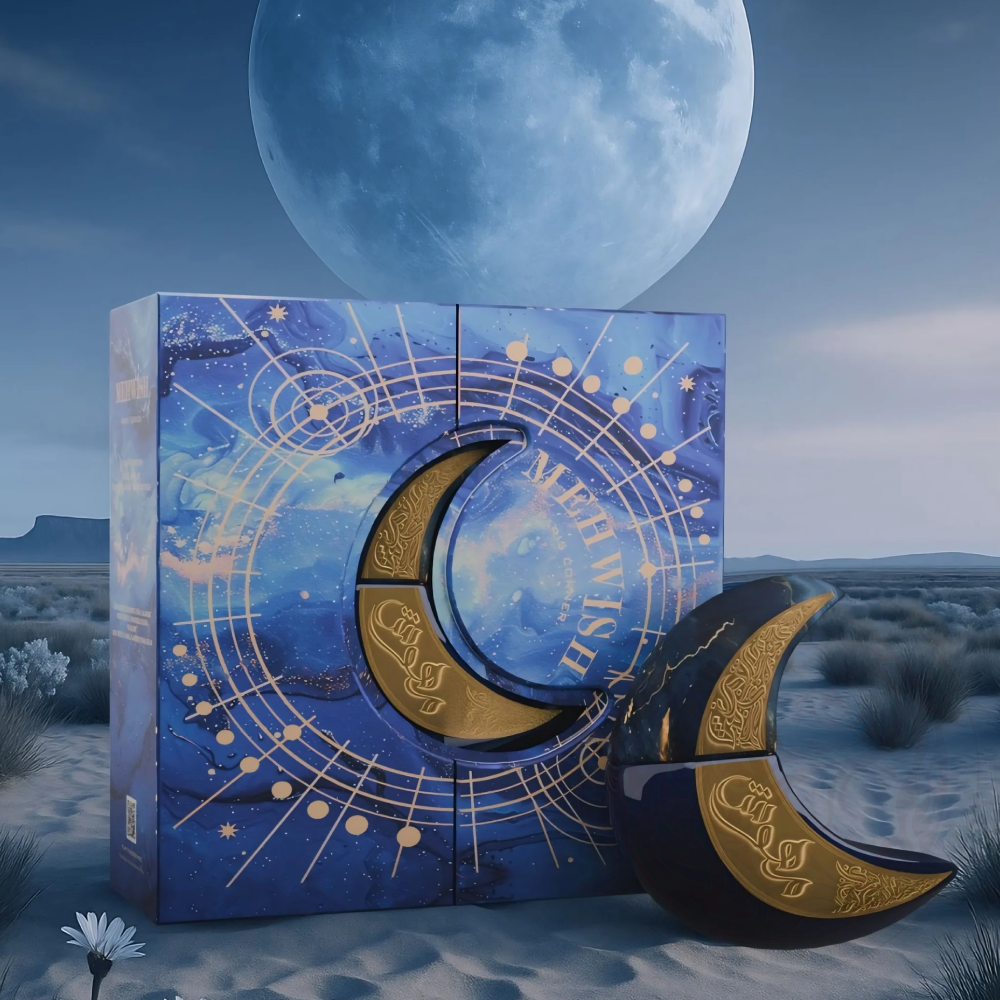 Prezent przy zamówieniu perfum za kwotę powyżej 60€!MEHWISH – nocny smakosz. Półksiężycowata sylwetka tego zapachu kryje w sobie kompozycję kontrastów: korzenną bergamotkę w miodzie, kwiat pomarańczy wzbogacony pistacjami oraz delikatną bazę z wanilii, bursztynu i bobu tonka.
